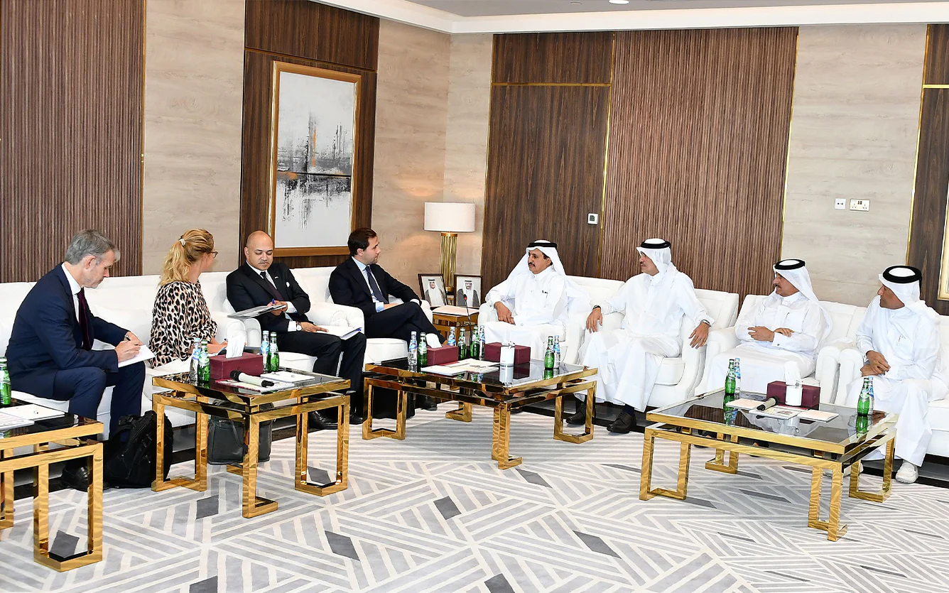 The joint business meeting, held at the Chamber’s headquarters, was attended by H.E. Dr. Ahmed bin Mohamed Al Sayed, Minister of State for Foreign Trade Affairs at the Ministry of Commerce and Industry, and H.E. Sheikh Khalifa bin Jassim bin Mohamed Al Thani, Chairman of Qatar Chamber.